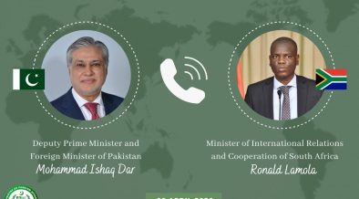 اسلام آباد (ڈیجیٹل پوسٹ) نائب وزیرِ اعظم،وزیرِ خارجہ سینیٹر محمد اسحاق ڈار نے آج جنوبی افریقہ کے وزیر برائے بین الاقوامی تعلقات و تعاون، رونالڈ لامولا کے ساتھ ٹیلیفون پر گفتگو کی۔دونوں رہنماں نے مشرقِ وسطی اور وسیع تر خطے میں ہونے والی تازہ پیش رفت پر تبادلہ خیال کیا۔ وزیر لامولا نے عارضی جنگ […]