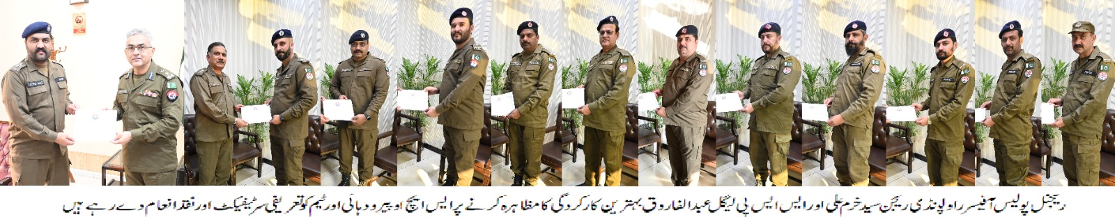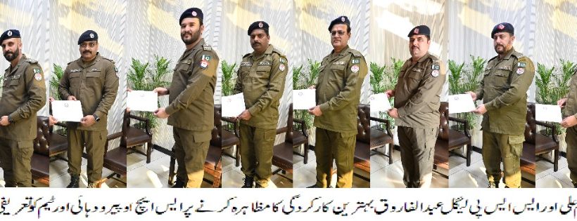 تفصیلات کے مطابق تھانہ پیر ودہائی کے ایس ایچ او اور ٹیم کو فرائض کی انجام دہی میں بہترین کارکردگی کا مظاہرہ کرنے پر ریجنل دفتر مدعو کیاگیا،ریجنل پولیس آفیسر راولپنڈی ریجن سید خرم علی اور ایس ایس پی لیگل عبدالفاروق نے افسران واہلکاروں کی حوصلہ افزائی کرتے ہوئے نقد انعام اور تعریفی سرٹیفکیٹ سے نوازا،تعریفی سرٹیفکیٹ حاصل کرنے والوں میں ایس ایچ او پیرودہائی سب انسپکٹر طیب ظہیر بیگ، سب انسپکٹر خرم شہزاد،اے ایس آئی غازی ذیشان سرور، اے ایس آئی لقمان فیاض،ہیڈ کانسٹیبل محمد عثمان،کانسٹیبل عمران علی، کانسٹیبل محمدعرفان،کانسٹیبل وسیم خان، کانسٹیبل راشدحسین، کانسٹیبل عرفان الرحمان،کانسٹیبل علی احمداور کانسٹیبل محمد نعیم شامل ہیں،اس موقع پر آر پی اوسید خرم علی نے کہا کہ بہترین کارکردگی کا مظاہرہ کرنے والے پولیس افسران انعام کے حقدا ر ہیں، آئندہ بھی بہترین کارکردگی کا مظاہرہ کرنے والے افسران کی حوصلہ افزائی کا سلسلہ جاری رہے گا۔