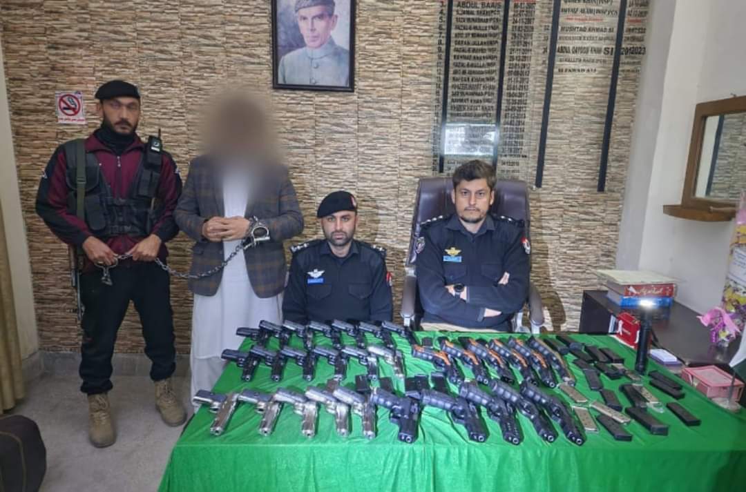 ▪ تھانہ سربند پولیس نے خفیہ اطلاعات پر رینگ روڈ ناکہ بندی کے دوران مشکوک موٹر کار سے بھاری تعداد میں غیر قانونی اسلحہ برآمد 34 عدد پستول سمیت 50 سے زائد سپئیر میگزین برآمد کرکے ملوث ملزم کو گرفتار کرلیا ہے۔