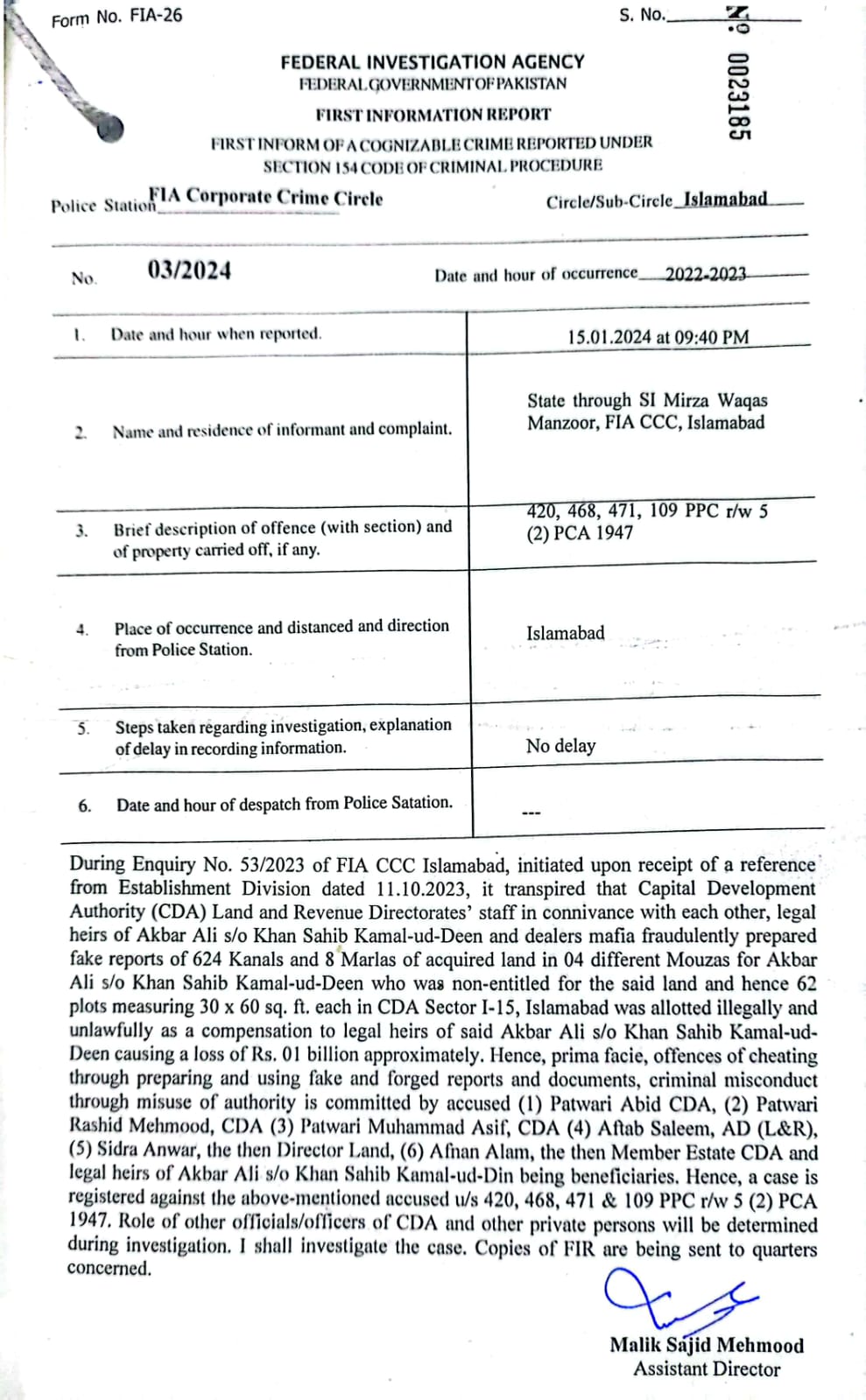 اب تک ایک اسسٹنٹ ڈائریکٹر،3 پٹواری،ڈیلنگ اسسٹنٹ سمیت 9 سی ڈی اے افسران گرفتار ہو چکے،سابق ڈائریکٹر سدرہ انور،تحصیلدار عامر اولک،پراپرٹی ڈیلرز مافیا سمیت 10 گرفتار نہیں ہو سکے