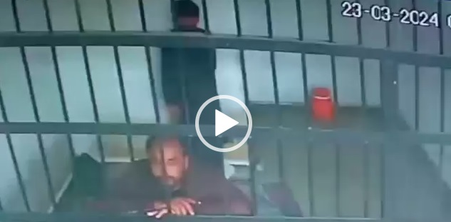 تھانہ شاہ پور حوالات میں 26 سالہ لڑکے حمزہ کی گلے پر ٹوٹی پیالی پھیر کر خودکشی کرنے کی سی سی ٹی وی فوٹیج۔