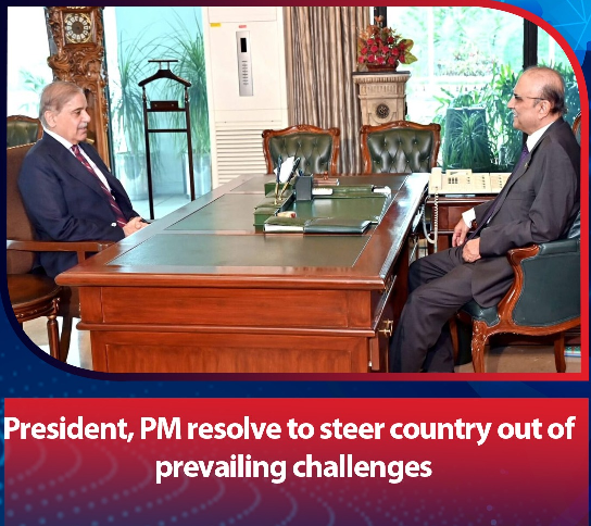 Prime Minister Shehbaz Sharif on Tuesday met with President Asif Ali Zardari wherein they expressed their resolve to steer the country out of prevailing challenges. In the meeting, they discussed the country’s overall political and economic situation,
