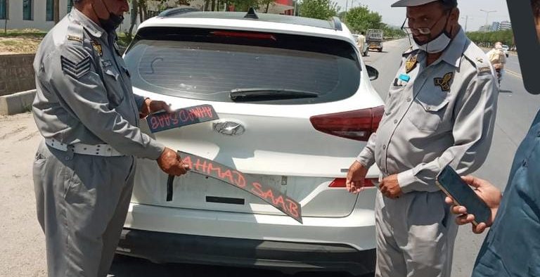 اسلام آباد کیپیٹل پولیس کا رواں ماہ 5,554 غیرنمونہ/فینسی نمبر پلیٹ اور 1884کالے شیشوں کی حامل گاڑیوں اور موٹر سائیکلوں کے خلاف کارروائی کی گئی،جبکہ 199غیرنمونہ/فینسی نمبر پلیٹ والی گاڑیوں اور موٹر سائیکلوں اور 77کالے شیشے والی گاڑیوںکو مختلف تھانہ جات میں بند کیا گیا،مزید برآں رواں سال سیف سٹی اسلام آباد نے 1,900 سے زائد فینسی /غیرنمونہ نمبر پلیٹ گاڑیوں کے خلاف کارروائی کرتے ہوئے ای چالان بھی جاری کیے۔