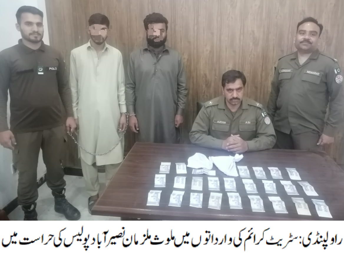 راولپنڈی(ڈٰیجیٹل پوسٹ) نصیر آباد پولیس کی کاروائی،سٹریٹ کرائم کی وارداتوں میں ملوث 02 رکنی گینگ گرفتار
