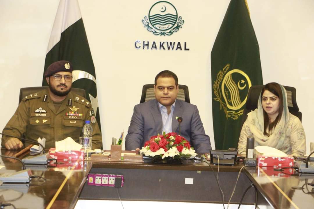 کمشنر راولپنڈی ڈویژن انجنیئر عامر خٹک کا ڈپٹی کمشنر چکوال قراۃ العین ملک کے ہمراہ سرکاری محکموں کے ضلعی سربراہان کا اجلاس