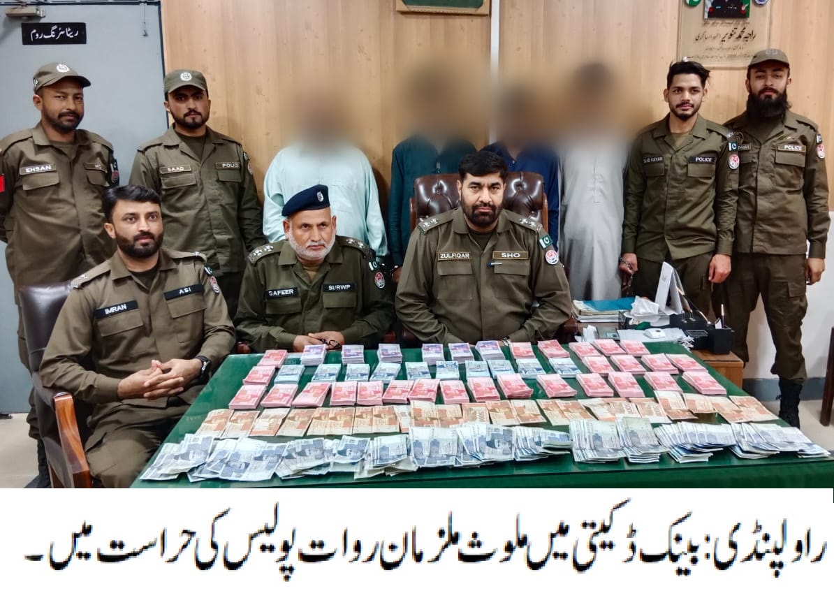 راولپنڈی(ڈیجیٹل پوسٹ) ایس ایچ او روات چوہدری ذوالفقار کی زیرنگرانی پولیس ٹیم کی اہم کاروائی، بینک ڈکیتی میں ملوث گینگ کے 4 ملزمان گرفتار