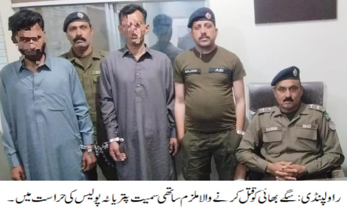 راولپنڈی( )ایس ایچ او تھانہ پتریاٹہ سعید کیانی کی ہمراہ پولیس ٹیم اہم کاروائی، معمولی تلخ کلامی پر فائرنگ کرکے سگے بھائی کو قتل کرنے والا ملزم ساتھی سمیت گرفتار۔تفصیلات کے مطابق پتریاٹہ پولیس نے ہیومن انٹیلی جینس سمیت تمام ذرائع بروئے کارلاتے ہوئے دونوں ملزمان وقاص اور انتظار کو گرفتار کیا، ملزم وقاص نے چند روز قبل اپنے سالے انتظار کے ہمراہ معمولی تلخ کلامی پر فائرنگ کرکے سگے بھائی سجاد کو قتل کر دیا تھا، واقعہ کا مقدمہ مقتول کے بھائی کی مدعیت میں تھانہ پتریاٹہ میں درج کیا گیا تھا، ایس پی صدر محمد نبیل کھوکھر کا کہنا تھا کہ گرفتار ملزمان کو ٹھوس شواہد کے ساتھ چالان عدالت کر کے قرار واقعی سزا دلوائی جائے گی،قتل جیسے سنگین مقدمات میں ملوث ملزمان کی گرفتاری لواحقین کو انصاف کی فراہمی میں اہم ہے۔