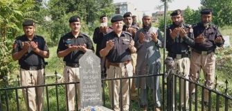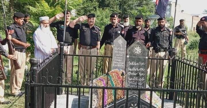 Charsadda (Crime Reporter) DSP Shabqadar Noor Ul Amin Khan along with the police team saluted the graves of martyred DSP Allama Iqbal, Inspector Ajmer Shah, Inspector Ishrat Khan, Shaheed Constable Qader Gul, Muzmal and Ziaur Rehman and showered flowers. While reciting Fatiha for the martyrs.