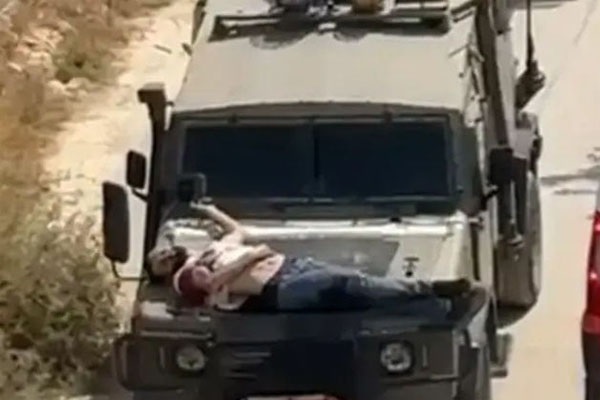 اسرائیلی فوج نے جنین میں ایک زخمی فلسطینی نوجوان کو اسپتال لے جانے کے بجائے جیپ کے بونٹ میں باندھ کر شہر بھر میں گھمایا۔