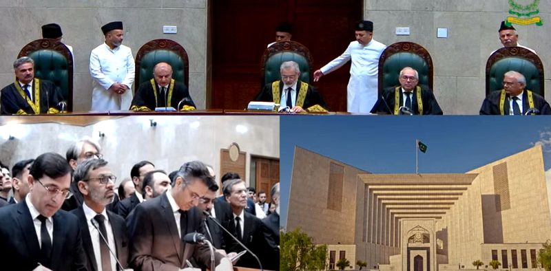 چیف جسٹس قاضی فائز عیسیٰ کی سربراہی میں بننے والے فل کورٹ بینچ میں جسٹس منیب اختر، جسٹس منصور علی شاہ، جسٹس اطہر من اللہ، جسٹس عائشہ ملک، جسٹس شاہد وحید، جسٹس اظہر حسن رضوی، جسٹس یحیٰ آفریدی، جسٹس جمال مندوخیل، جسٹس محمد علی مظہر، جسٹس عرفان سعادت، جسٹس نعیم افغان اور جسٹس امین الدین شامل ہیں۔