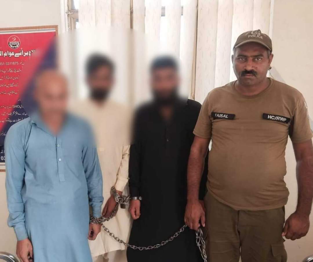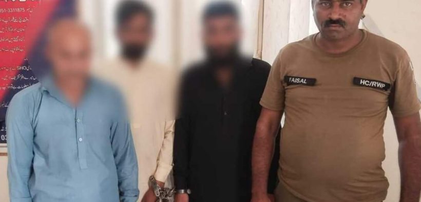 گرفتار ملزمان میں ثاقب، رضوان اور توصیف شامل ہیں،