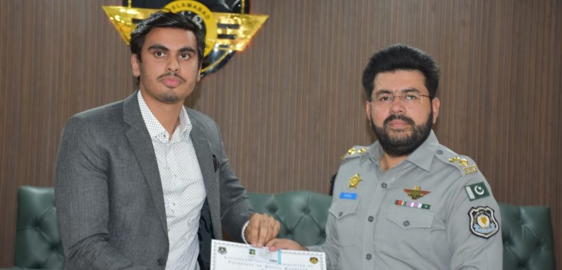 اسلام آباد پولیس کے زیر اہتمام فرینڈز آف پولیس پروگرام کے تحت وفاقی دارلحکومت کی مختلف یونیورسٹیز کے طلباءنے پروگرام مکمل کر لیا،ہمارے لئے آپ کی ٹریننگ مکمل کرنا ایک اہمیت کا حامل ہے،میرے لئے سب سے اہم اسکول کالجز تک جانا اور بہتر معاشرے کے لئے طلباءکی ذہن سازی کرناہے،چیف ٹریفک آفیسر محمد سرفراز ورک