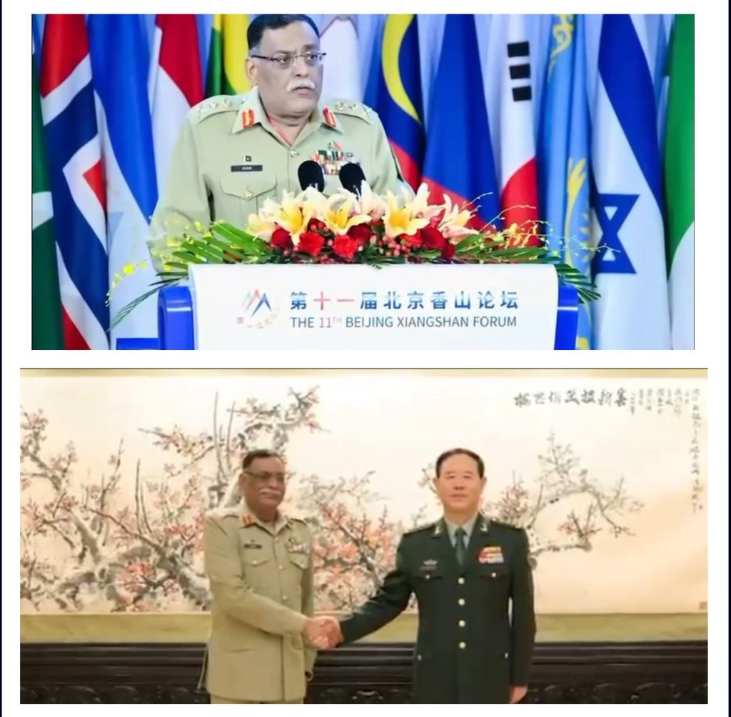 General Sahir Shamshad Mirza, NI (M), Chairman Joint Chiefs of Staff Committee on an official visit to People’s Republic of China held separate meetings with General He Weidong, Vice Chairman of the Central Military Commission (CMC) and General Liu Zhenli, Chief of CMC Joint Staff Department and delivered a talk in 11th Beijing Xiangshan Forum on the Role of Pakistan towards regional peace and stability.