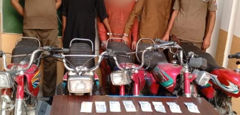 راولپنڈی(مظہر شاہ)ایس ایچ او تھانہ ریس کورس زوہیب شاہ کی ہمراہ پولیس ٹیم کاروائی، سٹریٹ کرائم اور بائیک لفٹنگ میں ملوث نبیل گینگ کا سرغنہ 02 ساتھیوں سمیت گرفتار،05 مسروقہ موٹر سائیکل، رقم 24 ہزار اور وارداتوں میں استعمال ہونے والا اسلحہ برآمد۔ تفصیلات کے مطابق ریس کورس پولیس نے کاروائی کرتے ہوئے سٹریٹ کرائم اور بائیک لفٹنگ میں ملوث نبیل گینگ کے سرغنہ کو 02 ساتھیوں سمیت گرفتارکر لیا،گرفتار ملزمان میں گینگ کا سرغنہ نبیل، علی اور عزیز اللہ شامل ہیں،ملزمان سے 05 مسروقہ موٹر سائیکل، رقم 24 ہزار اور وارداتوں میں استعمال ہونے والا اسلحہ برآمد ہوا،ملزمان نبیل اور علی کو متعدد وارداتوں کے انکشاف پر شناخت پریڈ کے لیے جیل منتقل کیا جارہا ہے، شناخت پریڈ کے بعد مزید برآمدگی متوقع ہے، ایس پی پوٹھوہار ناصر نواز نے ایس ایچ او ریس کورس اور ٹیم کو شاباش دیتے ہوئے کہا کہ منظم و متحرک گینگز کے خلاف کارروائیاں جاری رکھی جائیں گی۔