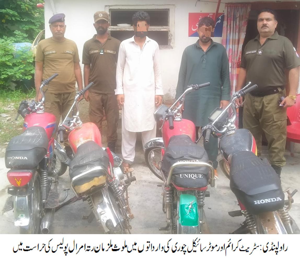راولپنڈی: رتہ امرال پولیس کی کارروائی،سٹریٹ کرائم اورموٹر سائیکل چوری کی وارداتوں میں ملوث 02 رکنی گینگ گرفتار