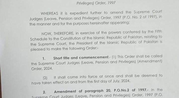 وفاقی حکومت نے سپریم کورٹ کے ججز کی تنخواہوں اور ہاؤس رینٹ الاؤنس میں اضاضہ کا نوٹیفکیشن جاری