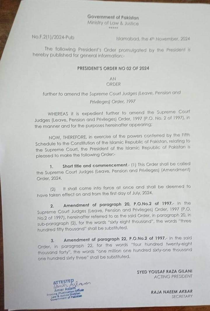 قائم مقام صدر کی منظوری کے بعد وزارت قانون و انصاف کی جانب سے نوٹیفکیشن بھی جاری