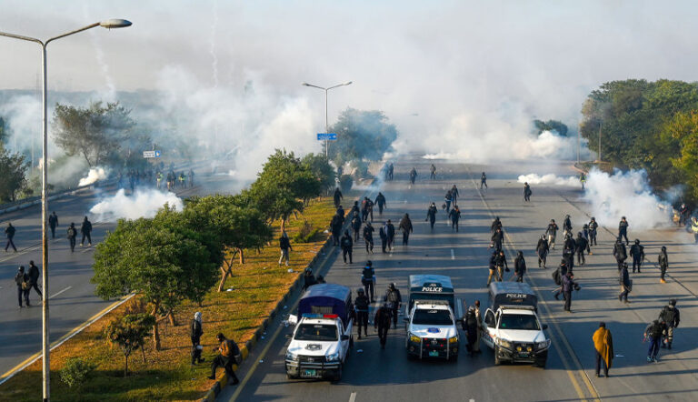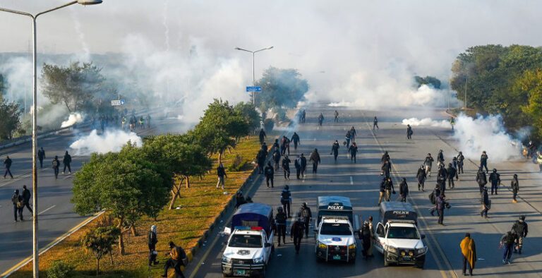 واضح رہے کہ منگل کو پی ٹی آئی کا احتجاجی مارچ اسلام آباد میں بلیو ایریا سے ہوتا ہوا ڈی چوک کی جانب بڑھا جہاں سیکیورٹی اہلکاروں اور پی ٹی آئی کے حامیوں کے درمیان دن بھر مختلف مقامات پر جھڑپیں ہوتی رہیں، تاہم مظاہرین کو منتشر کرنے کے لیے رات کو آپریشن شروع کیا گیا اور بلیو ایریا کو مظاہرین سے کلیئر کروا لیا گیا۔