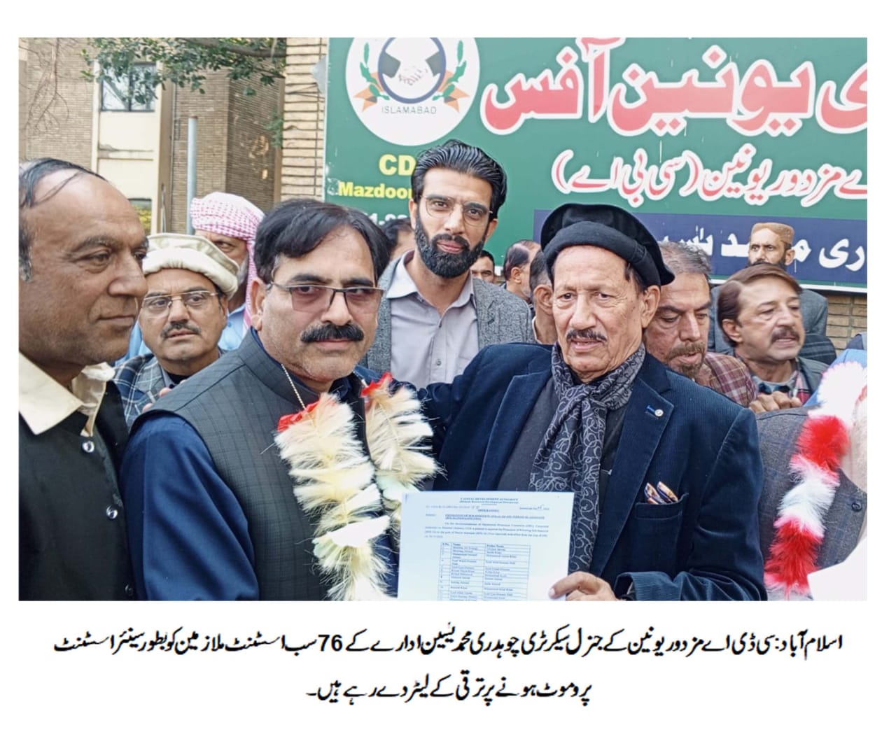 سی ڈی اے مزدور یونین کارکردگی کی بنیاد پر ریفرنڈم میں حصہ لے گی۔ چوہدری محمد یٰسین