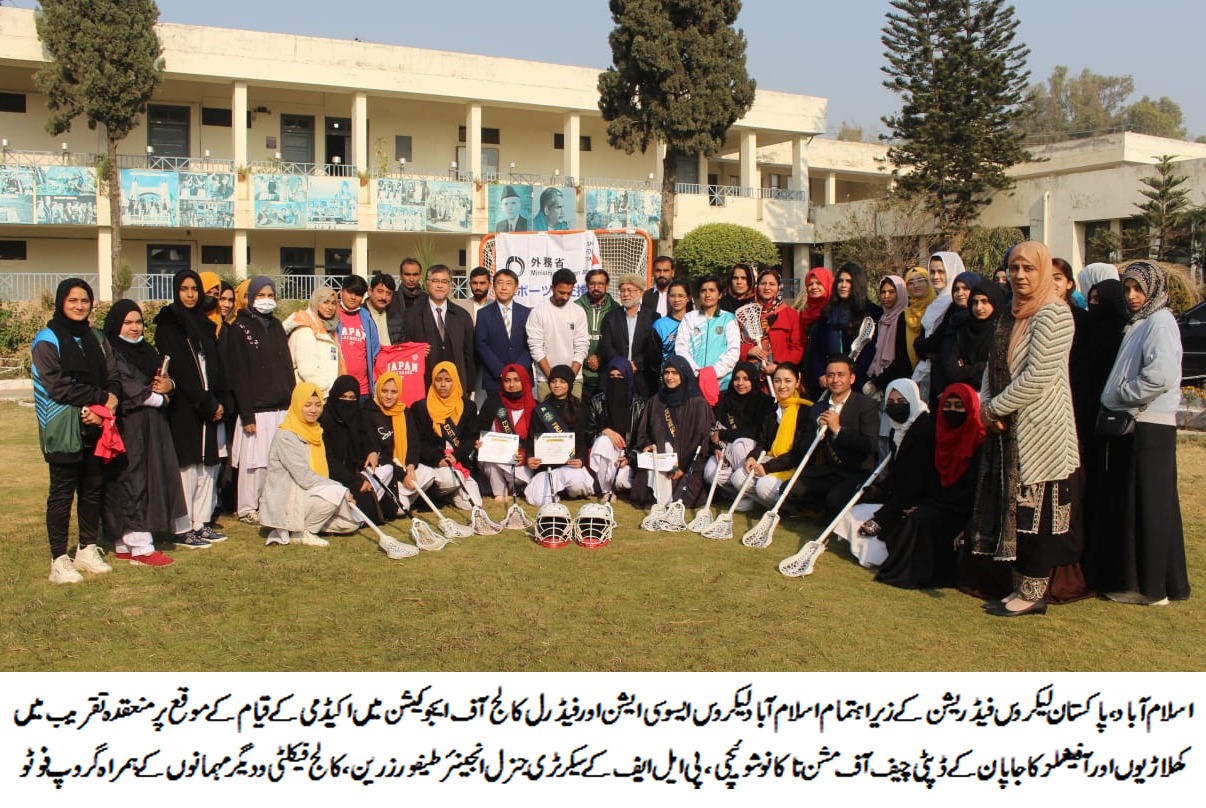 پاکستان لیکروس فیڈریشن کے زیراہتمام فیڈرل کالج آف ایجوکیشن اسلام آباد میں خصوصی تقریب کا انعقاد کیا گیا۔ اس کھیل کے حوالے سے کھلاڑیوں کے لیے تربیتی ورکشاپ کا انعقاد کیا گیا۔ اس موقع پر جاپان لیکروس ایسوسی ایشن نے سپورٹس ڈپلومیسی پروگرام کے تحت پاکستان لیکروس فیڈریشن کو لیکروس کا سامان عطیہ کیا جبکہ فیڈریشن نے اسلام آباد لیکروس ایسوسی ایشن اور ایف سی ای کو سامان فراہم کیا۔ فیڈرل کالج آف ایجوکیشن کی ڈائریکٹر ڈاکٹر سمیعہ رحمان ڈوگر نے لیکروس اکیڈمی کے قیام کو سراہا اور اس کی ترقی میں مکمل تعاون کی یقین دہانی کرائی۔ انجینئر طیفور زرین نے جاپان لیکروس ایسوسی ایشن، جاپانی سفارت خانے اور ایف سی ای انتظامیہ کا شکریہ ادا کیا۔