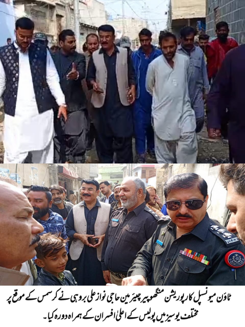 کراچی (ڈیجیٹل پوسٹ)( رپورٹ : پیر بخش نوناری )کراچی ٹاؤن میونسپل کارپوریشن منگھوپیر کے چیئرمین حاجی نواز علی بروہی نے 25 دسمبر کرسمس کے موقع پر مختلف یونین کونسلز میں موجود چرچز کا دورہ کیا اور جاری کاموں کا معائنہ کیا۔جس میں لائٹنگ اور صفائی ستھرائی کے کاموں کا جائزہ لیتے ہوئے ایم اینڈ ای ڈیپارٹمنٹ اور سینیٹیشن ڈیپارٹمنٹ کے کاموں کو سرہاتے ہوئے اطمینان کا اظہار کیا اور سیکیورٹی کے انتظامات کا جائزہ لیا۔ انہوں نے متعلقہ حکام کو ہدایت کی کہ مسیحی برادری کے لیے پرامن اور محفوظ ماحول فراہم کرنے کے لیے تمام ممکنہ اقدامات کیے جائیں تمام مذاہب کے ماننے والوں کے لیے برابر کے حقوق فراہم کرنا اور ان کے مذہبی مقامات کی حفاظت کرنا ہماری ذمہ داری ہے۔ اس موقع پر مسیحی برادری کو کرسمس کی مبارکباد دی اور ملک میں بین المذاہب ہم آہنگی کو فروغ دینے کے عزم کا اعادہ کیا۔اس موقع پر ان کے ہمراہ میونسپل کمشنر آغا خلیق ، وائس چیئرمین رانا محمد عارف، سندھ پولیس کے اعلی عہدے داران، افسران اقلیتی ممبر اشرف سردار کونسل ممبر حبیب اللہ سواتی انجینئرنگ ونگ کے آفاق عالم ،جنید صدیقی و دیگر بھی موجود تھے