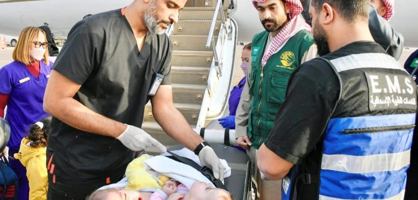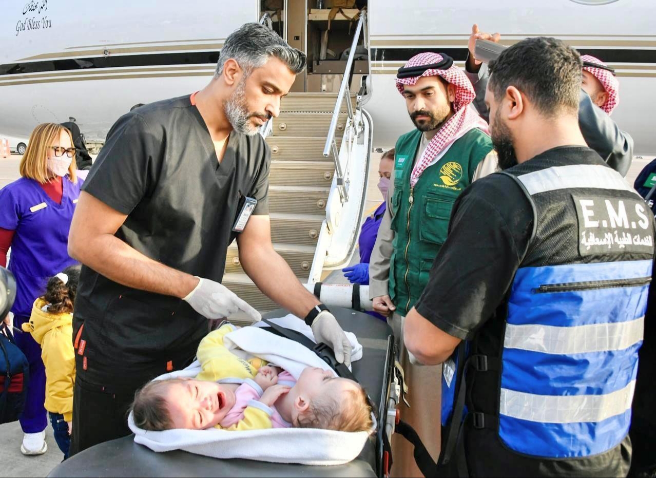 The twins were transported from Lebanon aboard a medical evacuation aircraft provided by the Saudi Ministry of Defense as part of the Kingdom’s humanitarian efforts.