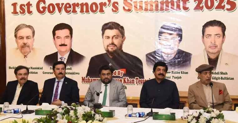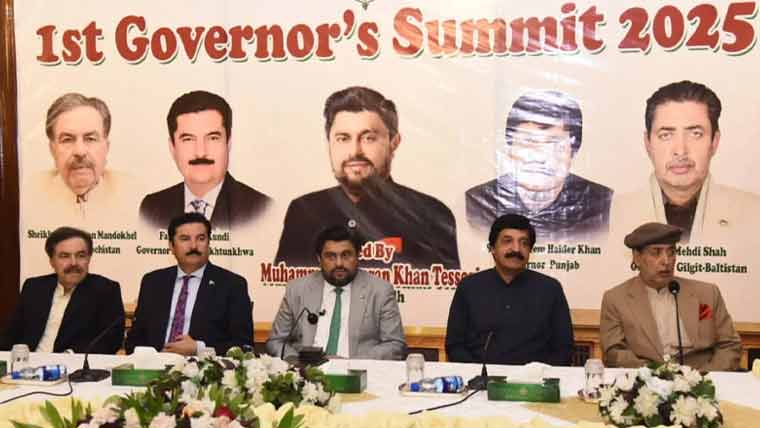 ، آئین پاکستان عوام کے حقوق کا محافظ ہے، ہمیں عوام کی خدمت کیلئے آگے آنا چاہئے، ہم زیادہ سے زیادہ عوام کی خدمت کرنے کی کوشش کر رہے ہیں۔ کامران ٹیسوری نے کہا کہ کچھ نکات پر اتفاق ہوا ہے جو صدر اور وزیراعظم کو پیش کریں گے، سٹاک ایکسچینچ اچھی چل رہی ہے، شرح سود کم ہو رہی ہے، اڑان پاکستان کے تحت پاکستان آگے بڑھے گا۔گورنر پنجاب سردار سلیم حیدر خان نے کہا کہ گورنر ہمیشہ وفاق کا نمائندہ ہوتا ہے، ملک کی بہتری کیلئے گورنرز اپنا بھرپور کردار ادا کریں گے، مشکل حالات میں ایک اتحادی حکومت بنائی گئی، یہ اتحاد مجبوری میں کیا گیا،ان 8 سے 9 ماہ میں ملک بہتری کی طرف گیا۔