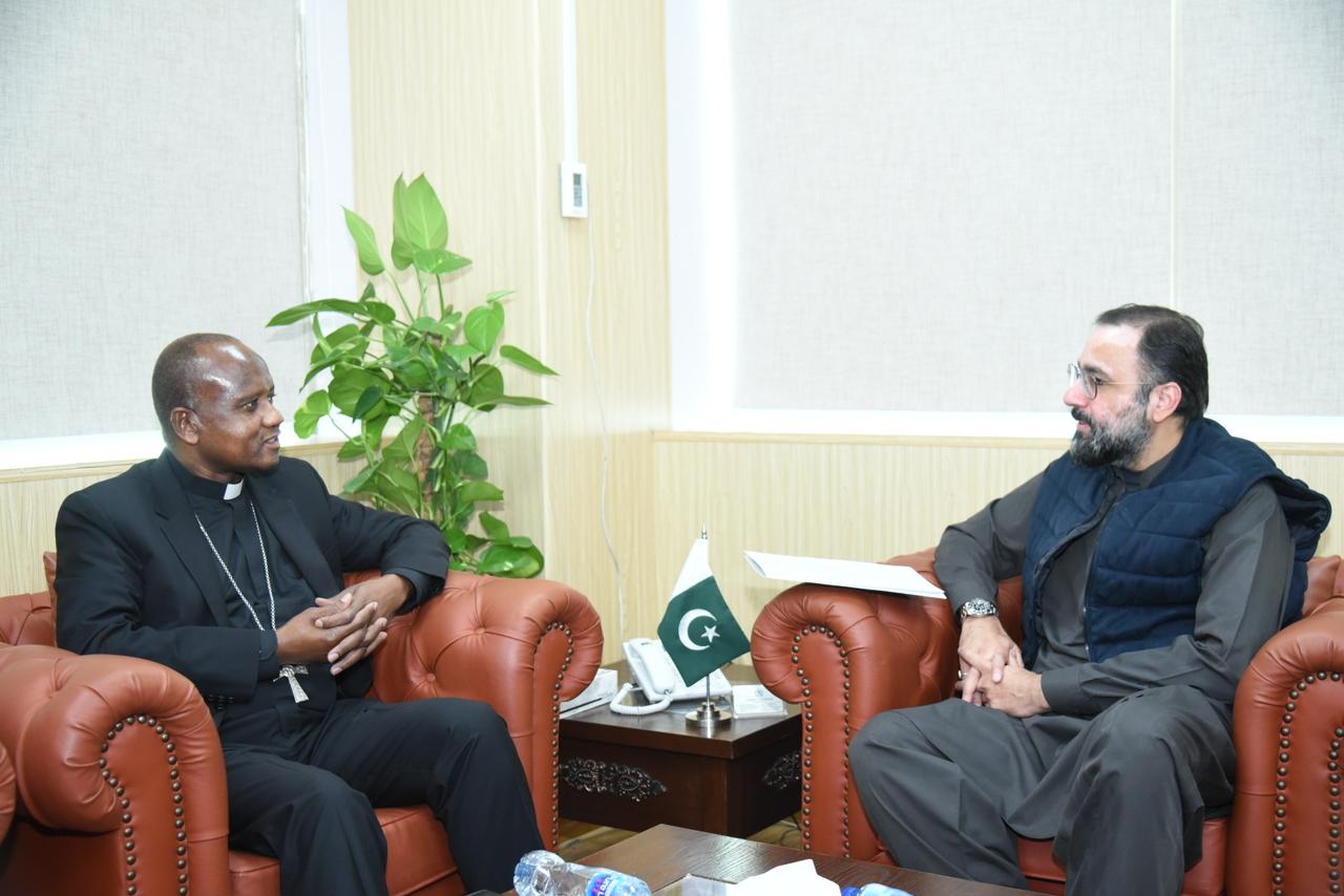Islamabad, Thursday, 23 January 2025 (Digital Post): Minister for Religious Affairs and Interfaith Harmony, Chaudhry Salik Hussain on Thursday met with the Ambassador of Vatican City, Archbishop Germano Penemote and discussed various issues regarding the growing trend of religious intolerance in the world, elimination of terrorism, sectarianism, establishment of peace, and promotion of interfaith harmony.