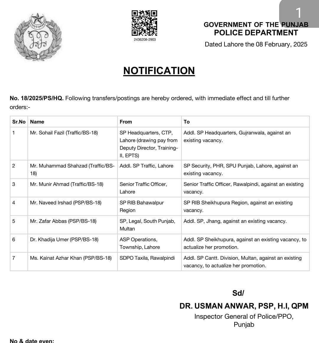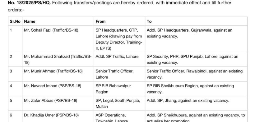 LAHORE National لاہور (ڈیجیٹل پوسٹ) آئی جی پنجاب ڈاکٹر عثمان انور نے 7 ایس پیز کے تقرروتبادلوں کے احکامات جاری کردیئے، نوٹیفیکیشن Digital Post February 9, 2025 Share پنجاب پولیس/ تقرروتبادلے لاہور (ڈیجیٹل پوسٹ) آئی جی پنجاب ڈاکٹر عثمان انور نے 7 ایس پیز کے تقرروتبادلوں کے احکامات جاری کردیئے، نوٹیفیکیشن
