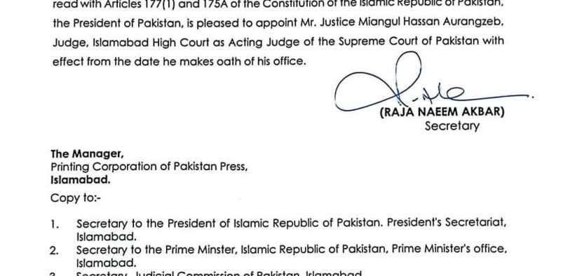 Islamabad National اسلام آباد (ڈیجیٹل پوسٹ) جسٹس میاں گل حسن اورنگزیب سپریم کورٹ کے قائم مقام جج تعینات Digital Post February 13, 2025 Share اسلام آباد (ڈیجیٹل پوسٹ) جسٹس میاں گل حسن اورنگزیب سپریم کورٹ کے قائم مقام جج تعینات، صدر مملکت کی منظوری کے بعد وزارت قانون نے رات 12 بجے نوٹیفکیشن جاری کر دیا۔