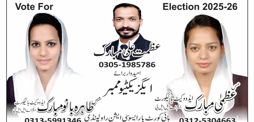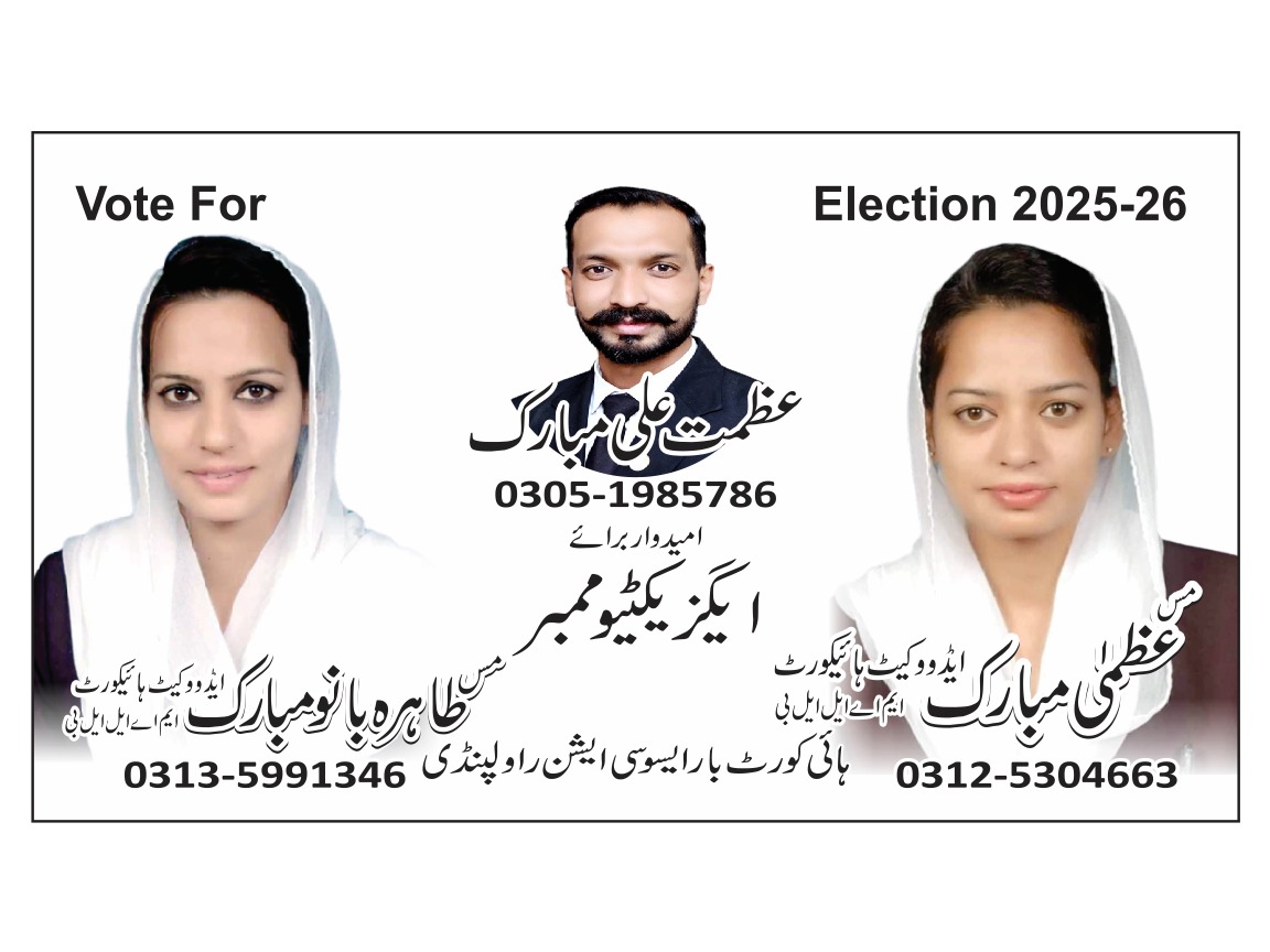 RAWALPINDI (Digital Post)(PR)Three real lawyers, sisters and brothers are ready to participate in the elections of High Court Bar Association Rawalpindi to be held on February 22. The Election Board of High Court Bar Association Rawalpindi has approved the nomination papers of Miss Tahira Bano Mubarak, Miss Uzma Mubarak and Azmat Ali Mubarak.