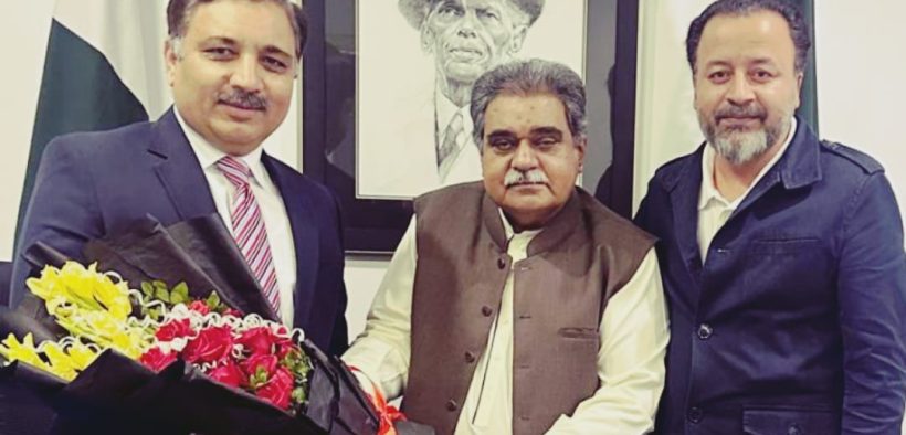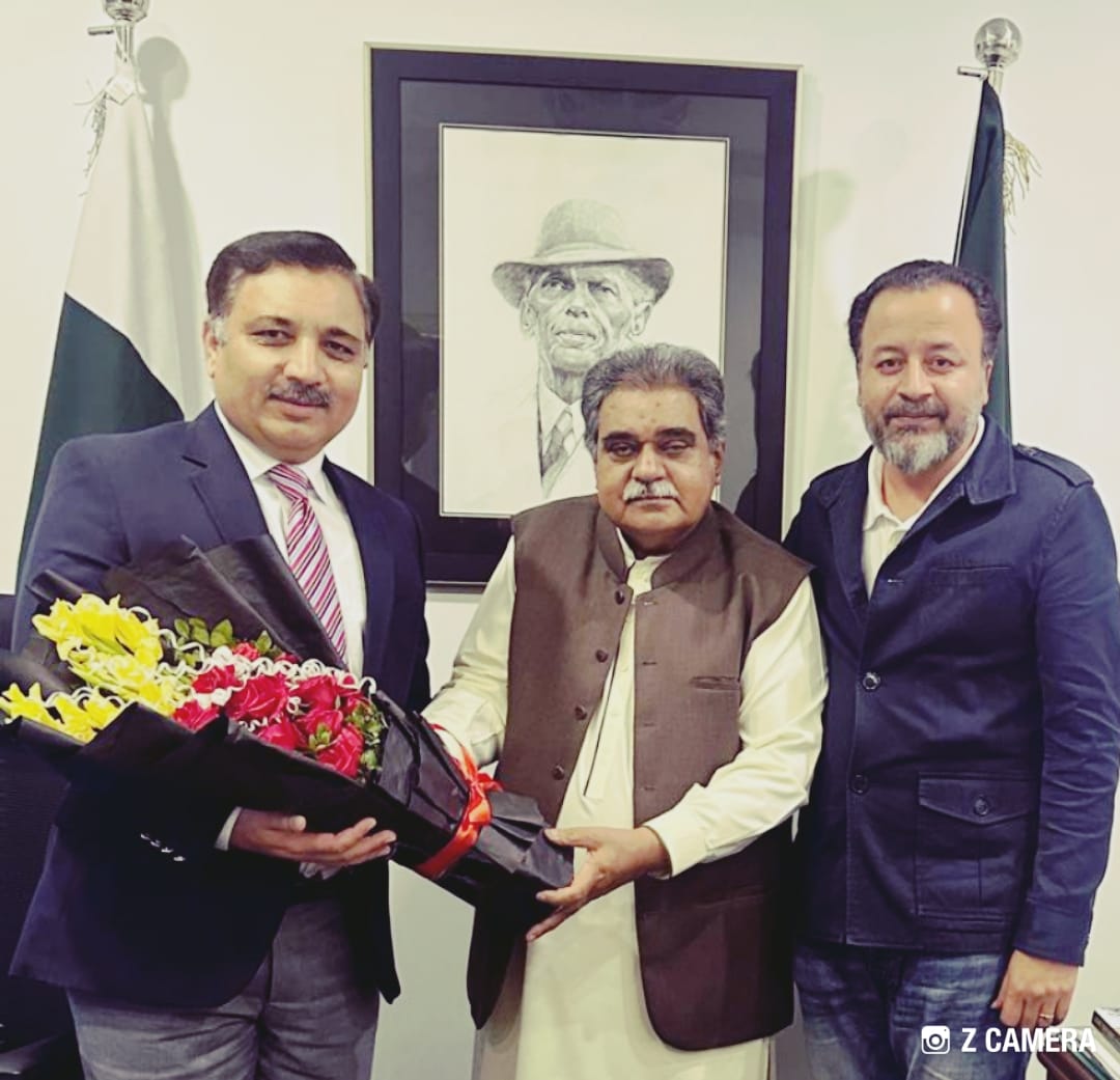 لاھور (ڈیجیٹل پوسٹ) پیرسیدسہیل بخاری چئیرمین ایشین ایوارڈز کمیٹی سید توقیر حیدر کاظمی ایگزیکٹو ڈائریکٹر لاھور آرٹس کونسل ( الحمراء ) کو ایک ملاقات میں گلدستہ پیش کر رہے ہیں ساتھ سید خرم نویل ڈپٹی ڈائریکٹر ایڈمن الحمراء ہیں