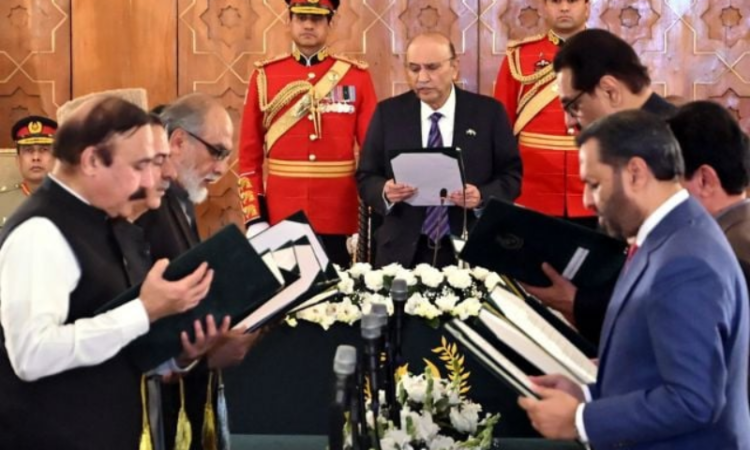 The new cabinet members were sworn in on February 27 in a ceremony administered by President Asif Ali Zardari. The event was attended by Prime Minister Shehbaz Sharif, Senate Chairman Yousuf Raza Gilani, and other dignitaries.