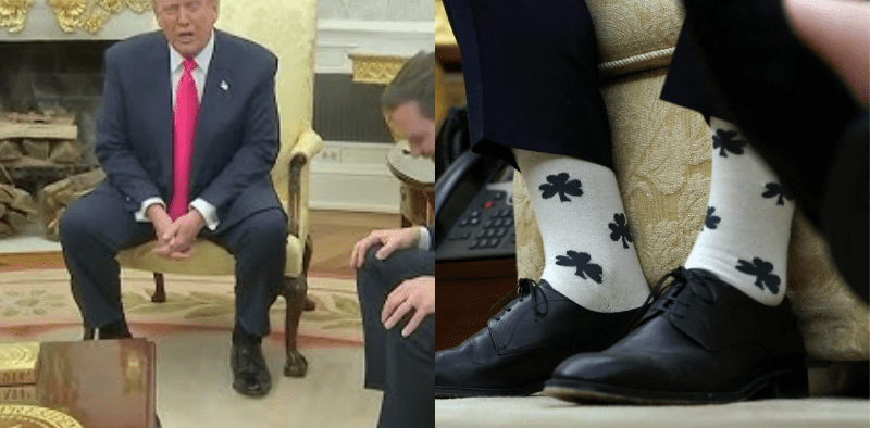 ٹرمپ کی جانب سے امریکی نائب صدر کے موزوں پر تبصرہ کرنے کے بعد اوول آفس میٹنگ میں بیٹھے لوگ بھی ہنسنے پر مجبور ہوگئے۔رپورٹ کے مطابق جے ڈی وینس نے وضاحت کی کہ انہوں نے موزے اپنے آئرش مہمان اور سینٹ پیٹرک ڈے کو خراج تحسین کے طور پر پہنے۔