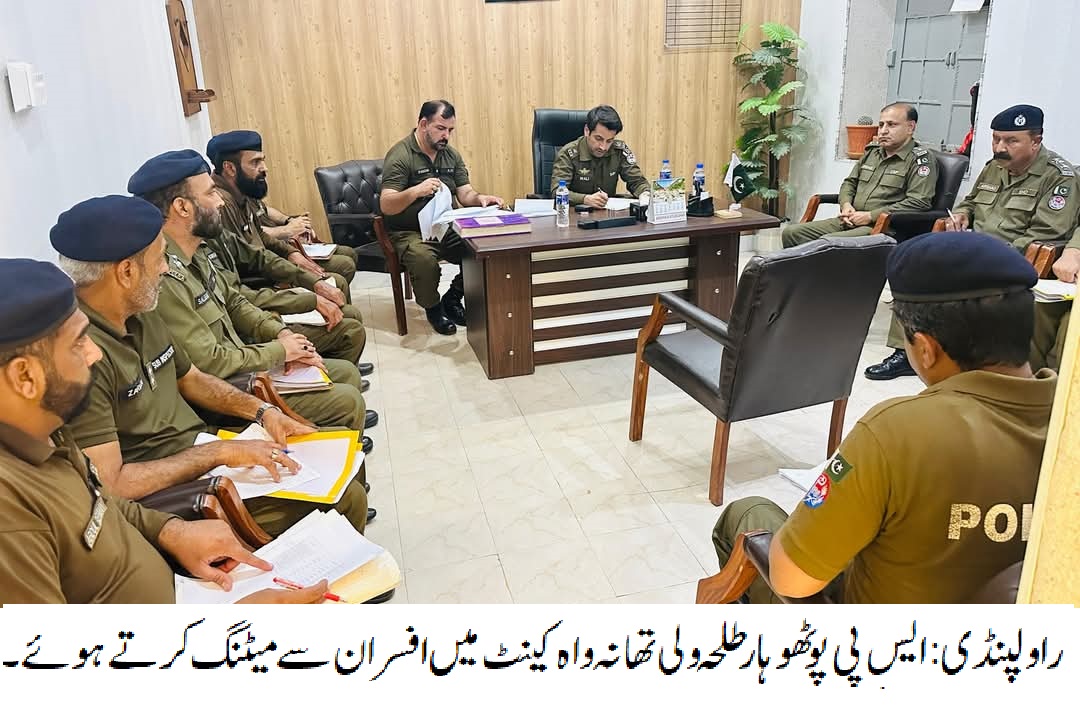 راولپنڈی (ڈیجیٹل پوسٹ)(مظہر شاہ )ایس پی پوٹھوہار طلحہ ولی کی تھانہ واہ کینٹ میں میٹنگ