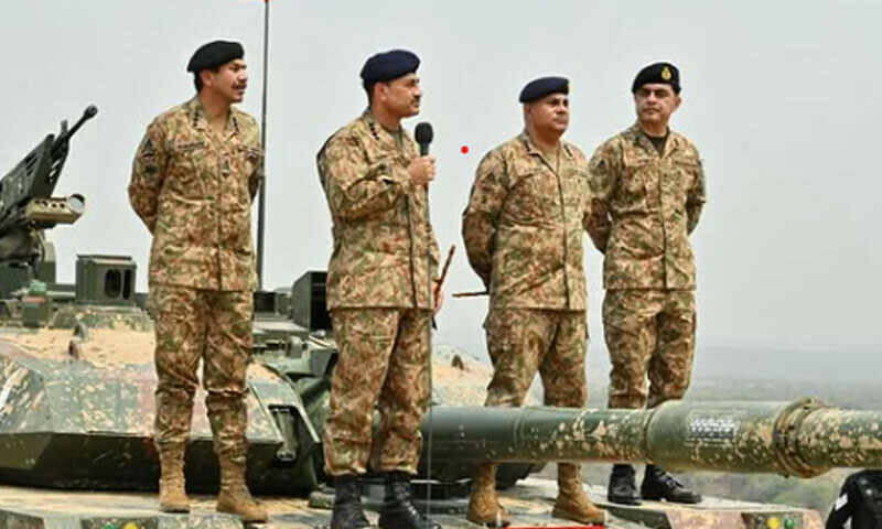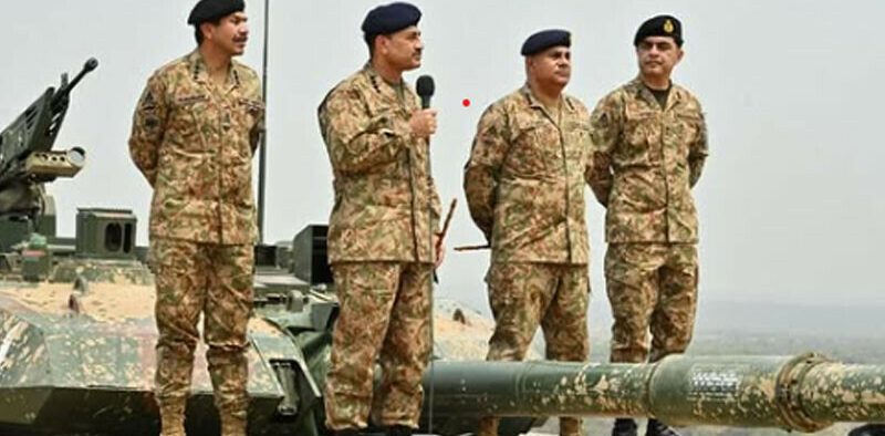 اسلام آباد (ڈیجیٹل پوسٹ) ,پاکستانی عسکری اور سیاسی قیادت نے ایک بار پھر بھارتی مہم جوئی پر منہ توڑ جواب دینے کا دبنگ اعلان کیا ہےخاص طور پر سامنے سے قیادت کرتے ہوئے پاکستان کے سپہ سالار جنرل سید عاصم منیر کا بھارت کی کسی بھی مہم جوئی کا منہ توڑ جواب دینے کا دبنگ اعلان کڑوروں پاکستانیوں کے دلوں کی آواز ہے پاک فوج کے شعبہ تعلقات عامہ آئی ایس پی آر سے جاری بیان کے مطابق آرمی چیف جنرل عاصم منیر نے ٹلہ فیلڈ فائرنگ رینج کا دورہ کیا, جہاں “ایکسسرسائز ہیمر اسٹرائیک”میں جنگی تیاریوں، جدید ٹیکنالوجی کا عملی مظاہرہ کیا گیا۔