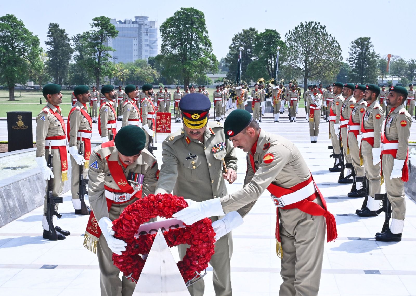 On this solemn occasion, Field Marshal Syed Asim Munir laid a floral wreath at the Yadgar-e-Shuhada and offered Fateha to pay tribute to the martyrs of Pakistan.