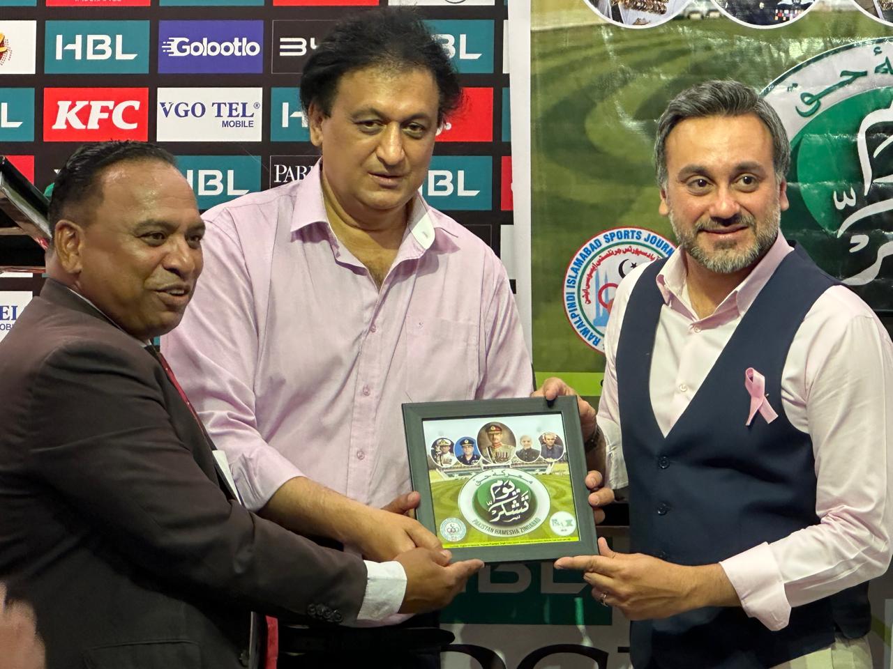 اس موقع پر خطاب کرتے ہوئے بانی صدر ساؤتھ ایشین اسپورٹس جرنلٹس ایسوسی ایشن اصغرعلی مبارک نے افواج پاکستان کو خراج تحسین پیش کیاانہوں نے کہا کہ معرکہ حق کے ”آپریشن بنیان مرصوص” بھارت کو دندان شکن جواب دے ثابت کیا ہے افواج پاکستان دنیا کی بہترین فوج ھےانہوں نے کہا کہ ہنود و یہود کے گٹھ جوڑ کو اتحاد کی طاقت سے شکست دی پاکستان میں کرکٹ کی بحالی سے ثابت ہوا پاکستان کرکٹ سے پیار کرنے والوں کا ملک ھے اصغرعلی مبارک نے آرمی چیف کی بے مثال اسٹریٹجک ذہانت کی تعریف کی، انہوں نے کہا کہ دشمنوں کے دلوں میں خوف پیدا کرنے والوں کو عزت دینا متحرک اور لچکدار قوموں کی پہچان ہے۔اس سلسلے میں پنڈی کرکٹ اسٹیڈیم میں منعقدہ تقریب میں صحافیوں شکیل احمد اعوان، زاہد خان، فرحت تربی، صالح مغل، طاہر نصیر ملک,عاصم ریاض، فرحان حسین، افضل جاوید، فہیم انور، ڈاکٹر زاہد اعوان، عنبرین علی، روزینہ علی، کرن خان، ماریہ راجپوت، شاکر عباسی، ارسلان شیرازی, سہیل راجہ، ناصر راجہ، حافظ عبید الرحمان,اکرام جوئیہ، لقمان شاہ، محمد عالی جاہ, ارفع فیروز ذکی، محمد ظریف، احمد حماد صدیقی، ناصر نقوی، ذوالفقار بیگ، جبار فیصل، راجہ عمران، علی داؤد، عقیل انجم، کے آصف,ذیشان قیوم، شہریار خان، رانا فہیم,عاصم جیلانی ,اویس عباسی، ابی بکر، وقار احمدmمجتبیٰ حیدر، شاکر عباسی، ایم اویس، زین ملک، زاہد فاروق ملک، مدثر چودھری، خالد چودھری، اصغر علی مبارک، عبدالمحی شاہ .عمران ستی، حفیظ سلطان ای ایم ٹی 1122، جمشید انور۔ 1122کو امن کے لیے کھیلوں کے ”یوم تشکر اعزاز ” سے نوازا گیا۔