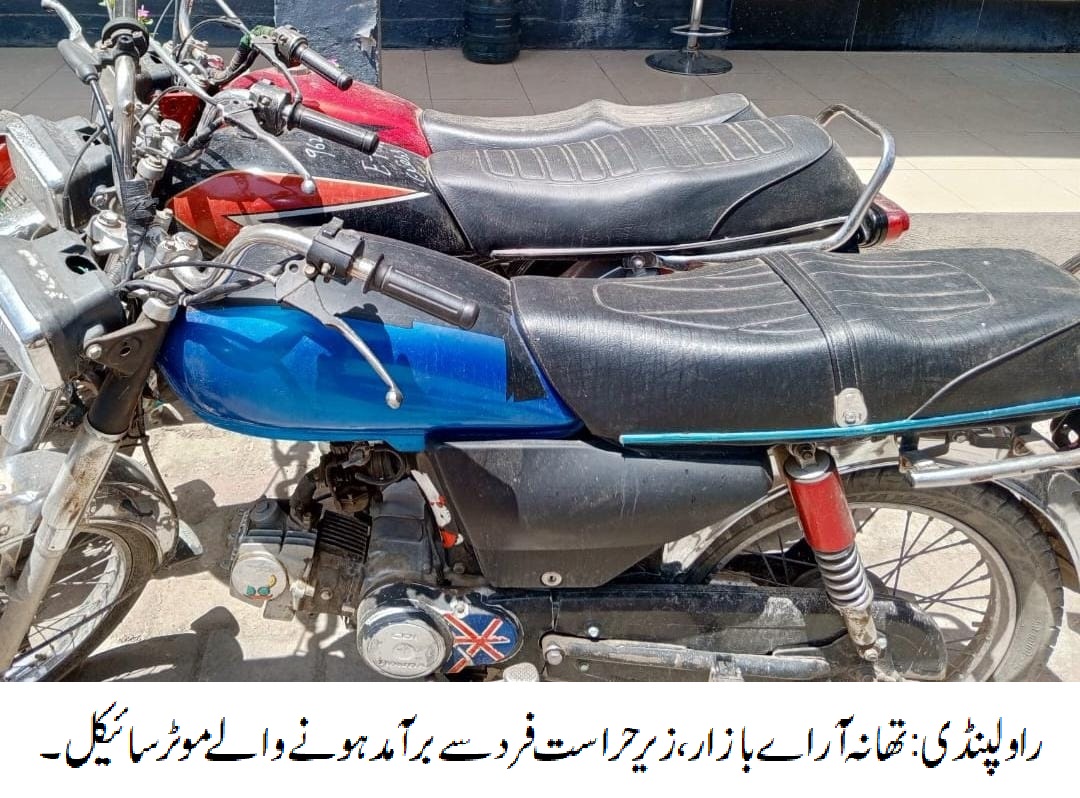 راولپنڈی (ڈیجیٹل پوسٹ) ایس ایچ او تھانہ آراے بازار جاوید سلہریا کی سربراهی میں پولیس ٹیم کی کاروائی، موٹر سائیکل چوری کے مقدمات میں ملوث فرد گرفتار، زیر حراست فرد سے مسروقہ 03 موٹرسائیکل برآمد ہوئے۔ تفصیلات کے مطابق آراے بازارپولیس نے کاروائی کرتے ہوئے موٹر سائیکل چوری کے مقدمات میں ملوث فرد کو گرفتار کر لیا، زیر حراست فرد سے مسروقہ 03 موٹرسائیکل برآمد ہوئے،ایس پی پوٹھوہار طلحہ ولی کا کہنا تھا کہ زیر حراست فرد کو ٹھوس شواہد کے ساتھ چالان عدالت کر کے قرار واقعی سزا دلوائی جائے گی۔