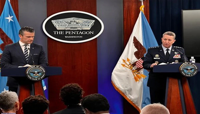 وزیردفاع نے کہا کہ امریکا نے بات چیت کیلئے60 روز دیئے مگر تہران نے سنجیدگی کا مظاہرہ نہیں کیا۔ان کا کہنا تھا کہ آپریشن میں شریک ہراہلکار نے بہترین کام کیا، امریکی آپریشن میں کسی ایرانی فوجی یا شہری کونقصان نہیں پہنچا، صرف ایرانی جوہری تنصیبات پرحملے کیے۔ امریکی وزیردفاع نے کہا کہ بی ٹوبمبار نے تاریخ کا سب سے بڑاحملہ کیا ہے اور اس کو مڈ نائٹ ہیمر کا نام دیا گیا ہے اور یہ خفیہ مشن تھا۔ ہم خود کا دفاع کریں گے۔ان کا کہنا تھا کہ ایران کے جوہری عزائم خاک میں مل چکے ہیں، صدرٹرمپ امن چاہتے ہیں اور ایران کو ٹرمپ کی بات مان کر امن کے راستے پر چلنا ہوگا۔ ایران پرامریکی حملے کا مقصد حکومت کی تبدیلی نہیں ہے۔امریکی وزیردفاع نے کہا کہ ایران پرحملے کومڈنائٹ ہیمرکانام دیاگیا۔