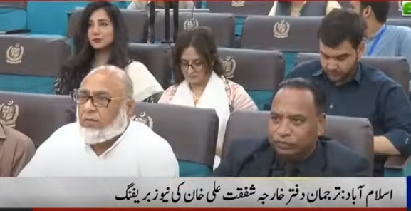 ترجمان دفتر خارجہ شفقت علی خان نے کہا ہے کہ پاکستان 22 جولائی کو کثیر الجہتی تعاون سے متعلق اعلی سطحی اجلاس کی میزبانی کرے گا، 23 جولائی کو فلسطین کے مسئلے پر سلامتی کونسل کا اجلاس بلایا جائے گا۔ ایس سی او وزرائے دفاع کانفرنس کے دوران بھارتی مشیر قومی سلامتی سے کوئی ملاقات نہیں ہوئی۔ انہوں نے کہا کہ ایران اور اسرائیل کے حوالے سے ہمارا موقف انتہائی واضح ہے، ہمارے افغانستان سے باہمی تعلقات انتہائی اہم ہیں اور ہم مسلسل دہشت گردی کا معاملہ اپنے افغان دوستوں سے اٹھاتے رہے ہیں۔ ترجمان دفتر خارجہ نے مزید کہا کہ پاکستان تبت سمیت چین کی خود مختاری کی حمایت کرتا ہے، اور پاکستان کشمیری راہنما شبیر احمد شاہ کی دہلی جیل سے فوری رہائی کا مطالبہ کرتا ہے۔ شفقت علی خان نے مزید کہا کہ ہم نے روس کی جانب سے کابل میں حکومت کو تسلیم کیے جانے کی خبر دیکھی ہے ، روس اس خطے کا اہم ملک ہے اور ہم تبدیلیوں کو نوٹ کررہے ہیں، یہ افغانستان اور روس کے درمیان باہمی معاملہ ہے۔ ترجمان دفتر خارجہ کا کہنا تھا کہ بھارت کی جانب سے اتراکھنڈ میں مزارات کی مسماری بھارت کی مسلم دشمنی کی عکاس ہے۔ ترجمان دفتر خارجہ نے مزید کہا کہ پاکستان نے 246 قیدیوں کی فہرست بھارتی ہائی کمیشن کے حوالے کی ہے، بھارت پر زور دیتے ہیں کہ پاکستانی قیدیوں کی حفاظت کی جائے، 2008کے قونصل رسائی معاہدے کے تحت فہرستوں کاتبادلہ کیاگیا۔ انہوں نے کہا کہ عالمی عدالت نے سندھ طاس معاہدے سے متعلق بھارتی درخواست خارج کردی، عدالت کا پاکستان کے حق میں فیصلہ ہماری فتح ہے۔
