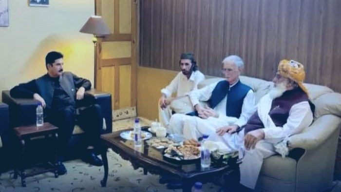 خیبر پختون خواہ (ڈیجیٹل پوسٹ) میں گزشتہ چند دنوں سے خیبر پختون خواہ میں ہوں اس دوران پشاور میں مولانا فضل الرحمٰن کے جمعیت علمائے اسلام (جے یو آئی) ف فاٹا کے زیرِ اہتمام گرینڈ قبائل جرگے میں نے شرکت کی اور گورنر ہاؤس کا بھی دورہ کیا اور کے پی کے میں سیاسی تبدیلیوں کے بارے میں ان سے بات کی۔ جس میں سیاسی تبدیلی کےامکان کا اظہار کیا جا رہا ہے۔ گورنر خیبرپختونخوا فیصل کریم کنڈی نے کہا کہ میں صوبائی حکومت کو آفر کرتا ہوں کہ 11 سنیٹرز میں سے 5 ہمیں دے دیں 6 خود لے لیں، ورنہ 35 آزاد ایم پی ایز ہیں ہم ان سے بات چیت کر کےاپنا جنرل سنیٹر نکالنے کی کوشش کریں گے خیبرپختونخوا کی سیاست میں بڑی تبدیلی کی بازگشت، صوبے کی اپوزیشن جماعتوں کی اہم مشاورت حتمی مرحلے میں داخل ہو گئی ہے۔ گورنر خیبرپختونخوا فیصل کریم کنڈی، وفاقی وزیر امیر مقام، وزیراعظم کے مشیر پرویز خٹک اور جے یو آئی کے سربراہ مولانا فضل الرحمان کے درمیان غیر رسمی ملاقات ہوئی۔یہ ملاقات پرویز خٹک کی رہائش گاہ پر ان کی ہمشیرہ کے انتقال پر تعزیت کے بعد ہوئی، جس میں صوبائی سیاسی صورتحال، ضم شدہ اضلاع کے مسائل اور امن و امان کی صورتحال پر تفصیلی گفتگو کی گئی۔ اپوزیشن قیادت نے آئندہ سینیٹ انتخابات میں مشترکہ حکمت عملی اپنانے اور متحدہ لائحہ عمل کے تحت الیکشن لڑنے کا اصولی فیصلہ کرلیا ہے۔ ملاقات میں ضم شدہ اضلاع میں بدامنی، عوامی تشویش اور وزیراعظم کی جانب سے قائم کمیٹی کے کردار پر بھی تبادلہ خیال کیا گیا۔