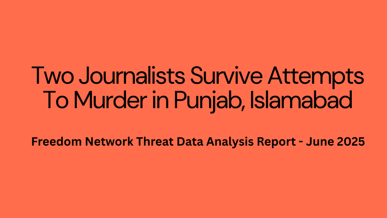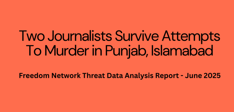 Islamabad (Digital Posts) Two journalists faced attempts to murder while 10 others experienced other cases, including arrest, detention, legal action, censorship, attack on property and threat of harm, during June 2025 across Pakistan.