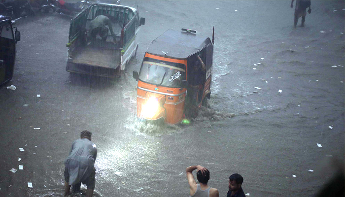 لاہور اور گردونواح میں رات بھر وقفے وقفے سے موسلا دھار بارش سے متعدد شاہراہیں تالاب کا منظر پیش کرنے لگیں۔