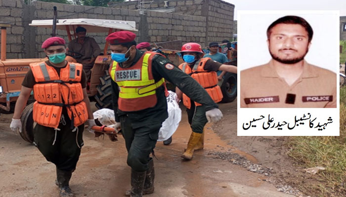 پنجاب پولیس کے ترجمان کے مطابق شہریوں کو ریسکیو کرنے کے دوران سیلابی ریلے میں بہہ جانے والےکانسٹیبل کی لاش مل گئی ہے۔