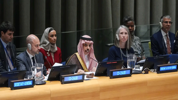 سعودی وزیر خارجہ نے فرانسیسی صدر ایمانویل میکرون کے ستمبر میں فلسطینی ریاست کو تسلیم کرنے کے اعلان کا خیر مقدم کیا اور کہا کہ یہ کانفرنس دو ریاستی حل کے لیے ایک فیصلہ کن سنگِ میل ہے۔