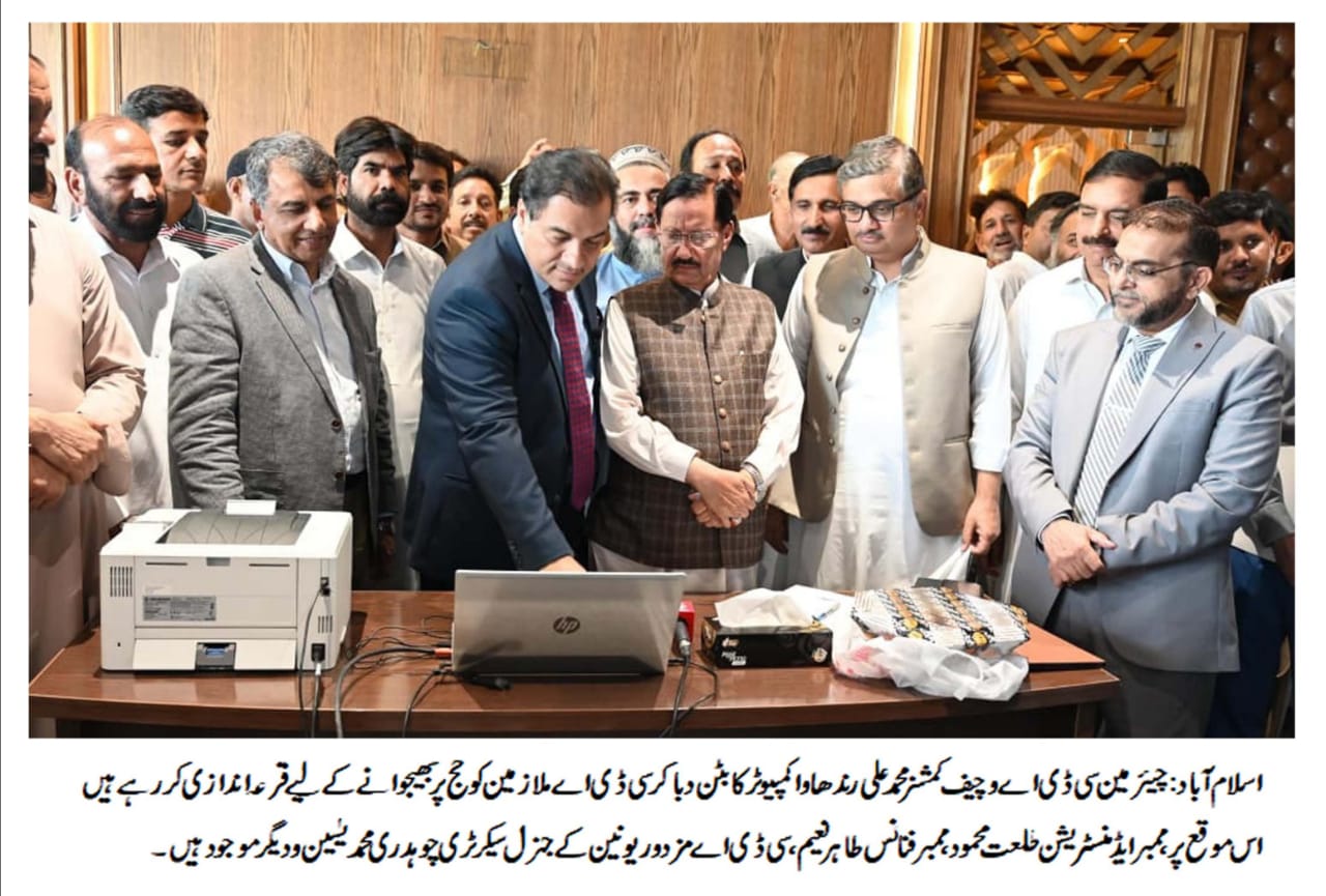 اسلام آباد (ڈیجیٹل پوسٹ) سی ڈی اے مزدور یونین (سی بی اے) کے معاہدے کے مطابق سی ڈی اے ملازمین کو حج پر بھیجوانے کے لیے قرعہ اندازی کی تقریب۔