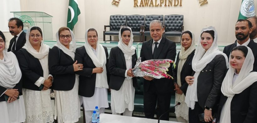 Rawalpindi (Digital Post) Member Executive Lahore High Court Bar Association, Advocate Miss Tahira Bano Mubarak, Advocate Miss Uzma Mubarak, Advocate Azmat Ali Mubarak, former member executive and others presented a bouquet of flowers to Mr. Justice Sadaqat Ali Khan during a ceremony in Rawalpindi,