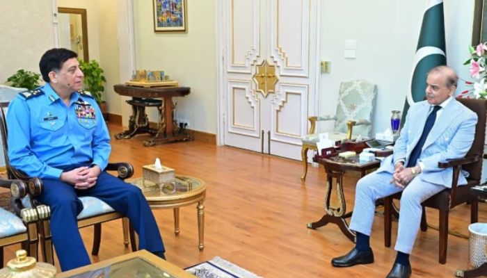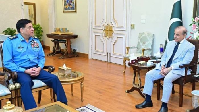 وزیراعظم شہباز شریف نے کہا کہ پاک فضائیہ کے شاہین وطن عزیز کے حفاظت کے لیے سیسہ پلائی دیوار ہیں ۔ معرکہ حق کے دوران پاک فضائیہ کے شاہینوں نے دشمن کے جہاز گرا کر اسے کاری ضرب لگائی۔ملاقات میں پاک فضائیہ کے پیشہ ورانہ امور کے حوالے سے بھی تبادلہ خیال کیا گیا۔
