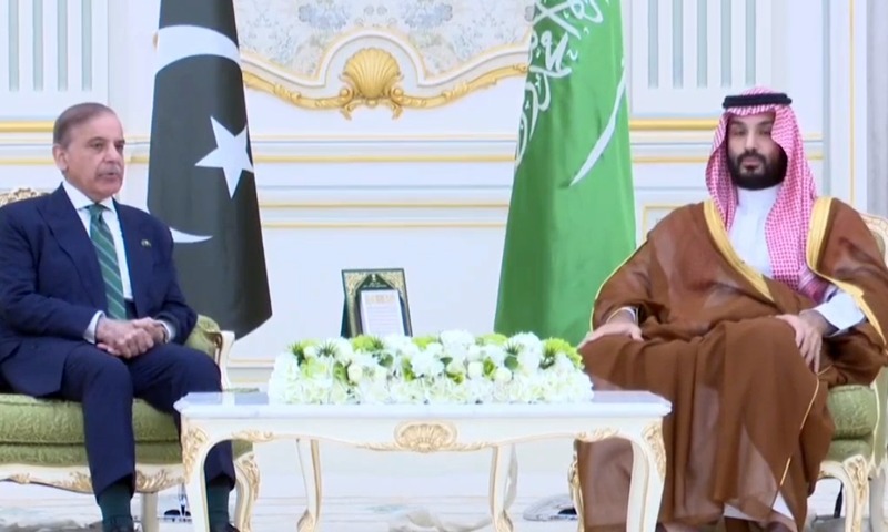 واضح رہے کہ وزیراعظم پاکستان شہباز شریف سعودی ولی عہد شہزادہ محمد بن سلمان کی دعوت پر سعودی عرب پہنچے تھے، جہاں ان کا پرتپاک استقبال کیا گیا۔ ان کے ہمراہ فیلڈ مارشل سید عاصم منیر اور وفاقی وزرا بھی موجود ہیں۔طیارہ جونہی سعودی عرب کی فضا میں پہنچا تو وزیر اعظم پاکستان شہباز شریف کو بطور ایک عظیم عالمی رہنما سعودی ایف 15 جیٹ طیاروں نے اپنے حصار میں لے لیا اور ایئرپورٹ تک ساتھ رہے۔ امریکی صدر ٹرمپ اور روسی صدر پیوٹن کے بعد پاکستانی وزیراعظم شہباز شریف وہ شخصیت ہیں جنکا سعودی عرب نے اتنا شاندار اور تاریخی استقبال کیا ہے۔